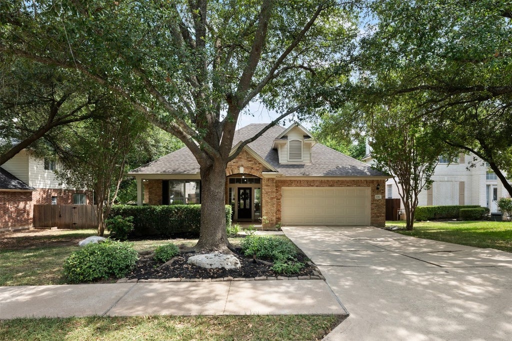 Lovely 1-story, 3 bedroom plus office on quiet, tree-lined street in highly desirable Round Rock location. Terrific price point for this well-maintained, 4-sides brick home perfect for owner occupant or investor! Wonderful, open floorplan with high ceilings, tons of natural light & neutral color palette throughout. Spacious family room with vaulted ceilings, inviting fireplace & attractive laminate wood flooring. Large formal dining / secondary living space. Good-sized office with French doors off foyer. Open kitchen with tile backsplash & large breakfast room overlooking the backyard & expansive deck area. Nice MIL plan with large & secluded primary bedroom & primary bath with dual vanity sinks, garden tub, separate shower & walk-in closet. Recent carpet & paint in family room, kitchen & primary bath. Great outdoor space the huge deck & private backyard. Roof replaced in 2022. Wonderful community amenities including playscape, pool, tennis & pickleball courts, sand volleyball court, basketball courts & miles of beautiful hike & bike trails. Highly rated RRISD school district & zoned to nearby Old Town Elementary, Walsh Middle School & Round Rock High School. Convenient to I-35, tolls, & popular shopping & dining.