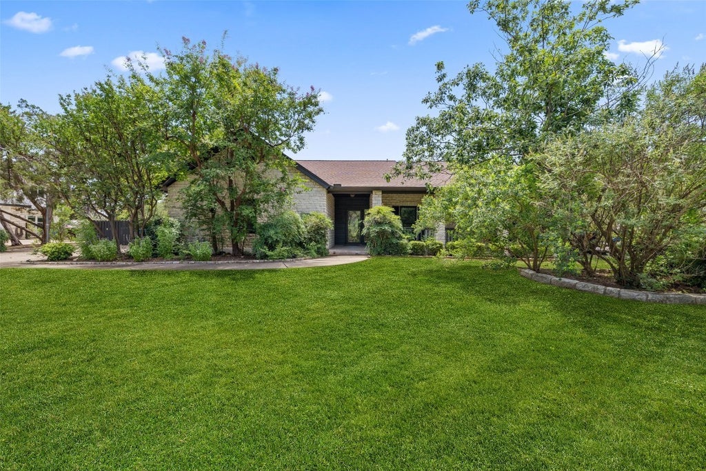Welcome to 103 Schooner Dr—an updated single-story retreat in the heart of Lakeway. This 4-bedroom, 2-bathroom home has been thoughtfully refreshed with high end Pella windows and Anderson sliding doors just installed in 2025, fresh interior and exterior paint, updated lighting and ceiling fans, luxury vinyl plank flooring in the bedrooms, a 50-gallon hot water heater installed August 2025, and a recently installed HVAC with WiFi thermostat. The kitchen shines with painted cabinetry, new hardware, and updated fixtures, while the living room is anchored by a stately stone wood-burning fireplace with a new mantle. Outdoors, sprinkler and landscaping improvements add convenience and curb appeal. Set on a generous 0.327-acre lot with mature trees and a spacious fenced backyard, the home offers timeless charm and modern comfort. Cathedral ceilings, skylights, and expansive windows create an airy, light-filled atmosphere, while the oversized sunroom connects seamlessly to the backyard and private primary suite. The large primary bedroom features a wood burning fireplace and a lovely bathroom with a jetted tub, walk-in shower, and dual closets, providing a serene retreat. A spacious covered patio extends the living space outdoors—perfect for entertaining or quiet evenings under the Texas sky. An attached two-car garage and flexible layout make everyday living easy. Located in highly rated Lake Travis ISD and minutes from Lakeway Marina, golf, trails, and boutique shopping, 103 Schooner Dr combines classic architecture with modern upgrades. With no HOA and a low tax rate, it’s a rare find in Old Lakeway. Elegant, inviting, and move-in ready—this is Lakeway living at its finest.
